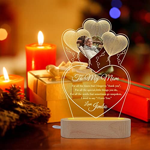 Bemaystar Lampada LED Cuore Cornice con Foto Personalizzata Amore Palloncino Scritta 3D Illusione Ottica Luce Notturna Personalizzata Regalo Donna Originale Regalo Compleanno Festa Della Mamma