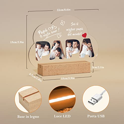 Bemaystar Lampada Foto Personalizzata Regalo Papà Compleanno Personalizzato Luce Notturna a Forma di Nuvole Idea Regalo Festa del papà Targa in Plexiglass Decorazioni per la Casa