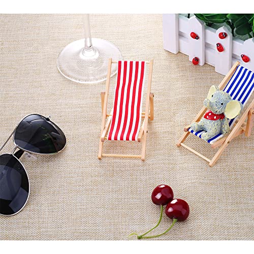 Bememo 2 Pezzi 1:12 Sedia in Miniatura da Spiaggia Chaise Longue in Legno Pieghevole Sedia a Sdraio Mini Mobili Accessori con Rosso/Blu Striscia per Interno Esterno