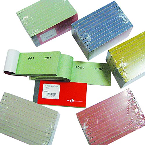 BM BeMore- Mod 9 - Blocchetti Numerati Da 1 A 1000 - Formato 13Cm X 6Cm - Confezioni Da 10 Blocchi Colorati - Eventi, Feste, Fiere, Lotterie E Sorteggi