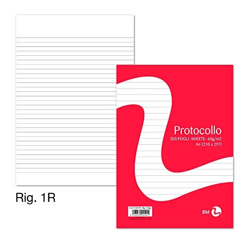 BM BeMore - Carta Protocollo A4 - 0100190 - Rigatura 1R - Righe senza Margini - Carta 60 g/mq - Blister da 200 Fogli - Ideale per Scuola e Ufficio
