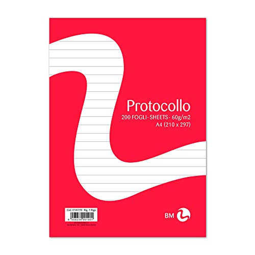FOGLIAZIONE: Una pratica confezione da 200 pezzi di fogli protocollo righe della BM BeMore, che ti permetterà di avere sempre a disposizione i tuoi fogli protocollo.