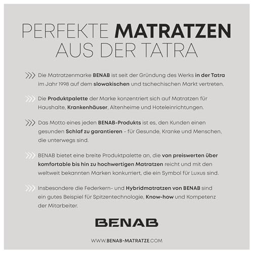 BENAB Visco Plus - Materasso in schiuma memory con profilo anatomico a 7 zone, 18 cm (80 x 200 cm)