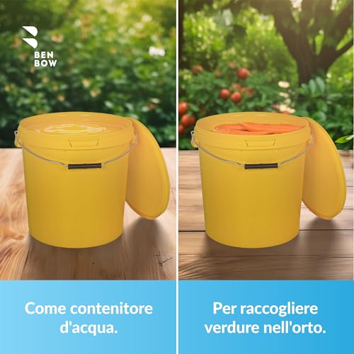 BenBow Secchio con coperchio 20l giallo 1x 20 litri - sicuro per gli alimenti, stabile, ermetico, a prova di perdite - contenitore per la conservazione in plastica, con manico in metallo - vuoto
