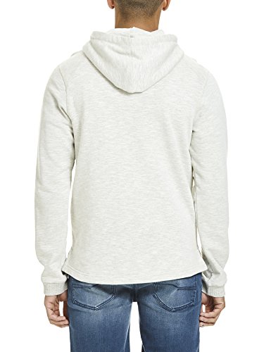 Dettaglio: pullover con comodo cappuccio e coulisse, con elastico in vita elasticizzati, logo sul davanti