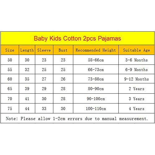 BenCreative Neonati Maschi in Cotone Pigiama Set Cartoon Manica Lunga Tops e Pantaloni Toddler Bambini Sleepwear/Nighties Vestiti per 0-4 Anni Bambini