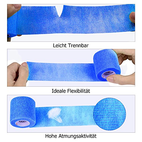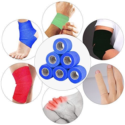 Benda 6 pezzi Bende adesive coesive Benda elastica BLU Larghezza 5 cm Larghezza 4,5 m Lunghezza per dita, mano, dita dei piedi, piedi senza colla, toppe per le dita, medicazione arrotolata