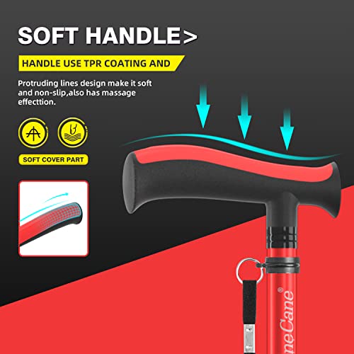 Pieghevole: la canna può essere piegata è molto utile per la vita quotidiana, soprattutto in viaggio, la dimensione della piega è 47 x 16,3 x 4" si adatta alla maggior parte della borsa, è una buona scelta se stai cercando un bastone per le donne.