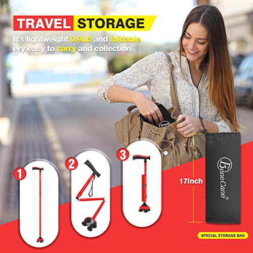 BeneCane Bastone da passeggio per uomini e donne bastone da passeggio per anziani bastone pieghevole Quad Cane regolabile leggero robusto autoportante pieghevole