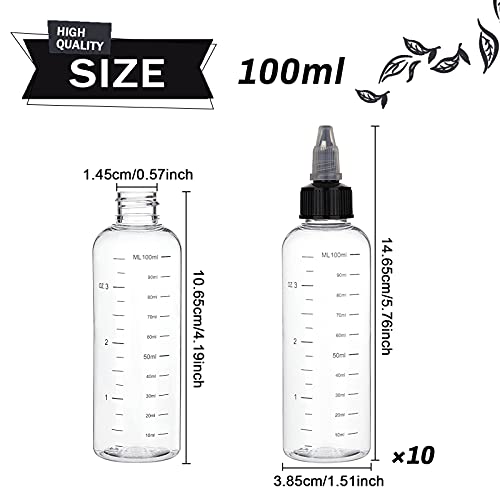 BENECREAT 10PZ 100ml Bottiglie di spremitura in plastica Trasparente con Scala e Tappo a Torsione Nero Bottiglie di erogazione per Inchiostro Liquido, Oli, Gel, Colla