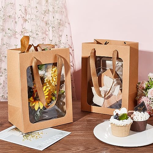 BENECREAT 10PCS Palline Regalo Borsa in Carta Marrone con Finestra Trasparente 18x13,2x25cm Adatto per Shopping, Confezione Regalo, Festa, Matrimonio