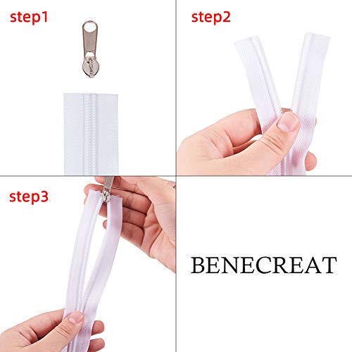 BENECREAT 10m 5# Cerniera in Nylon Bianca con 10 PCS Cerniere Lampo a Metro Cuttable per Artigianato Cucito per Uso Domestico