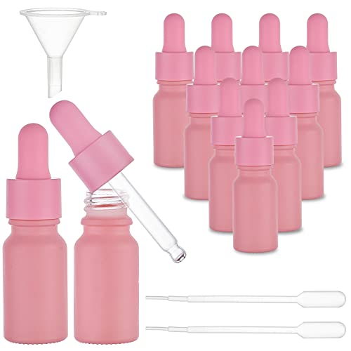 BENECREAT 12 Confezione di Flaconi Contagocce in Vetro Rivestito Rosa con Imbuto 1 pz, 2 Pipette di Trasferimento in Plastica per Oli Essenziali, Profumi, Colonia (10ml)