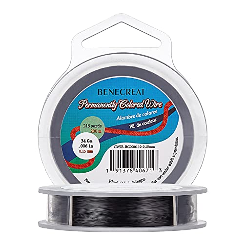 BENECREAT Filo di rame per gioielli, 0,15 mm, 200 m, per gioielli, fai da te, colore: nero