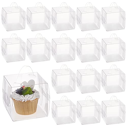 BENECREAT 20 Imposta Scatole Regalo Trasparenti in PVC con Manico e Carta, Scatole Trasparenti per Bomboniere da 8.5x8.5x8.5 cm Scatole Cubiche per Torta Caramelle Dessert al Cioccolato