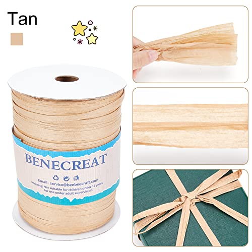 BENECREAT 300m 6.5mm Nastro di Rafia Nastro di Carta Artigianale Color Legno Corda di Rafia per Confezioni Regalo, Fiori, Decorazione di Tessuti Artigianali