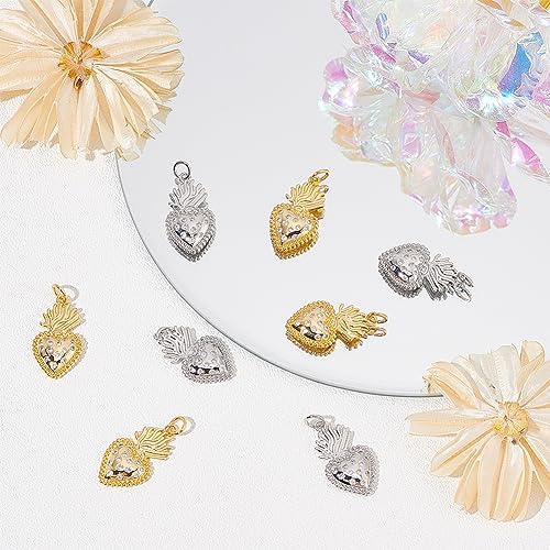 Quantità e Dimensione: Riceverai 8 ciondolo cuore sacro in 2 colori, oro e platino, 4 pz / colore. I ciondoli sono lunghi circa 22 mm, 12.5 mm di larghezza e 3 mm di spessore, Foro: 3.5 mm.