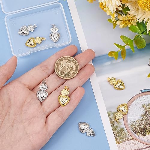 BENECREAT 8 Pz 18K Vero Ottone Placcato Cuore Sacro Charms Micro Pave Cubic Zirconia Charms Ciondoli A Forma di Cuore con Anelli di Salto per La Creazione di Gioielli Fai-Da-Te (Oro, Platino)