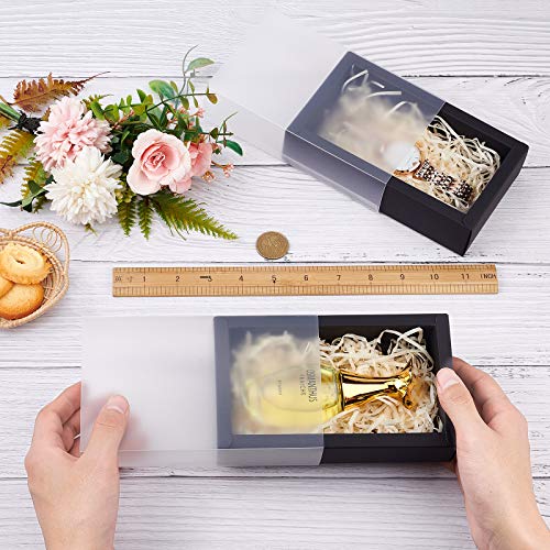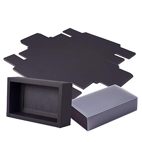 BENECREAT 12 Pezzi Scatola di Cartone Rettangolare Nera Kraft Scatola da 17x10x4cm con Coperchio in Plastica Opaca per Feste, Regali