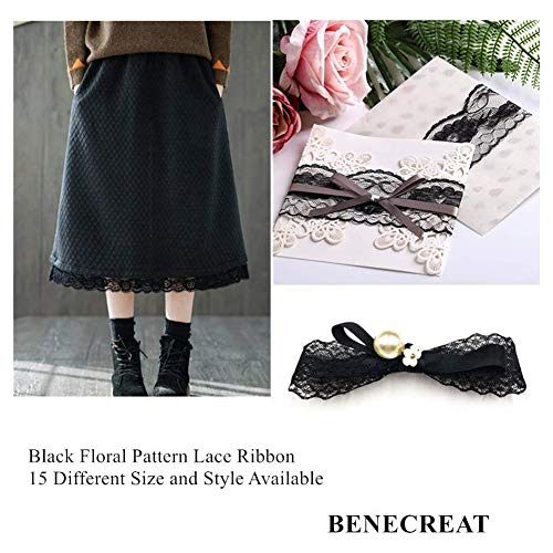 BENECREAT 15 Rolls 34.29m Black Floral Pattern Tessuto Pizzo Nastro dal Rotolo per Invito a Nozze, Carte, Decorazione, Cucito, Fiocco per Capelli, Confezione Regalo, Formato Misto