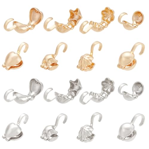 BENECREAT 48 pz 8 stili Punte di Perline Placcate Oro 18k Coprinodi Placcati In Platino Punte A Crimpare A Conchiglia Copriperline Ripiegabili In Argento Punte A Crimpare con Conchiglia
