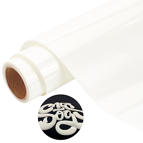 BENECREAT 3D Puff Heat Transfer Vinyl 25cmx2m White Puffy HTV Iron On Vinyl Glowing Blue Putty Vinyl Easy Cut Heat Press Vinile Schiumogeno per T-Shirt Vestiti Cuscini Borsa Tessile Tessuto
