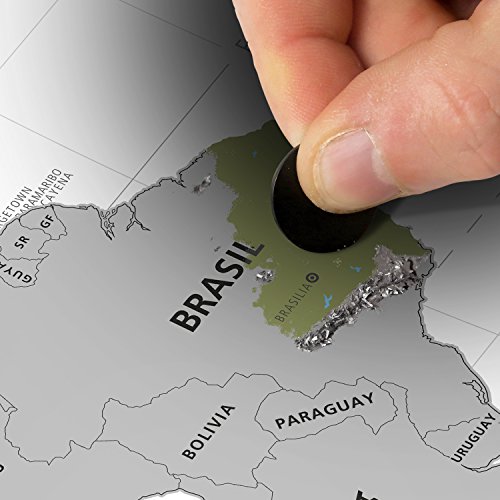 #benehacks Planisfero Mondo da grattare Poster Mappa del Mondo in Spagnola - Cartina geografica da Utilizzare Come diario da Viaggio - Cartina Mondo - Argento/Bianco 84 x 44 cm