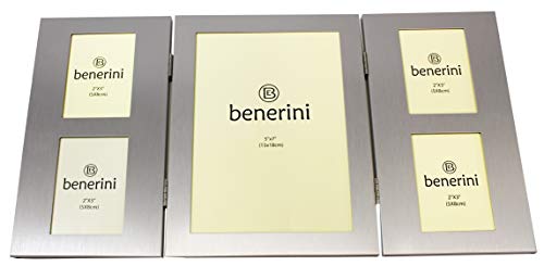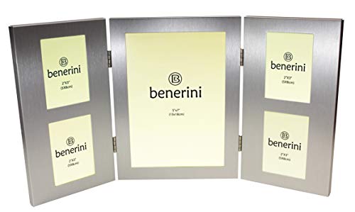 Benerini 5 Foto A Colorei Argento Rasoato Alluminio Spazzolato Piega La Multi Cornice Foto - 1 Foto di 13 X 18 Cm E 4 Foto di 5 X 8 Cm