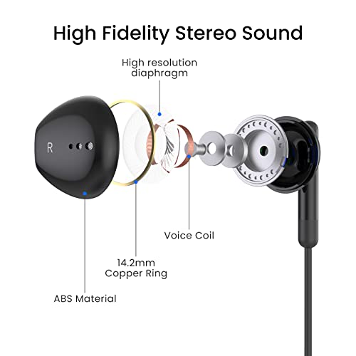 Design ergonomico confortevole: Il design di questi auricolari cablati si basa sulla nostra ricerca sui big data nel condotto uditivo, che si adattano alle curve naturali dell'orecchio per un comfort e una stabilità ottimali e senza fatica per lunghi periodi di utilizzo. Ti porterà l'esperienza di ascolto e di alta qualità, puoi goderti la tua musica durante la corsa, il ciclismo, le passeggiate o il fitness in palestra.