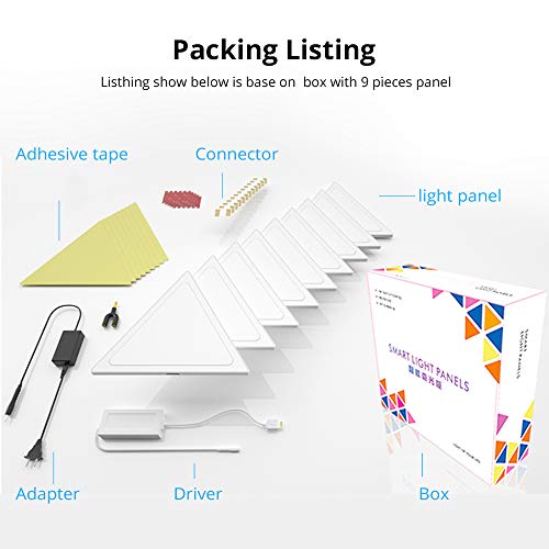 BENEXMART Smart LED Light Panel 9 PCS Pannello triangolare multicolore Bluetooth Android/iOS APP Kit di controllo musicale per illuminazione di ambienti/feste/pareti (9 pieces panel kit)