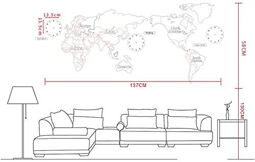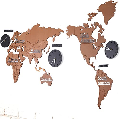 Benfa Orologio da Parete Creativo 3D Mappa del Mondo in Legno Ampio Soggiorno Ufficio Camera da Letto Decorativo Orologio da Parete Orologio (Lunghezza 220 Cm * Altezza 105 Cm),#4,A
