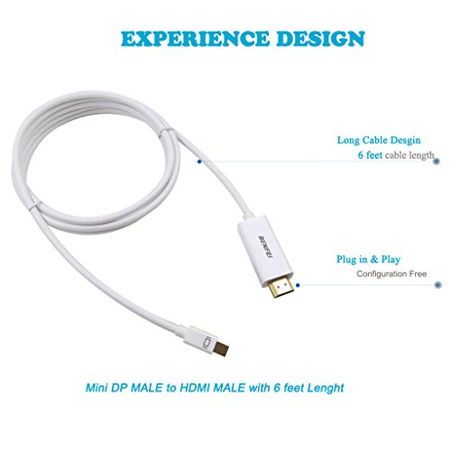 Benfei, mini adattatore, da DisplayPort (Thunderbolt) a cavo HDMI, 1,82 metri, con audio, convertitore da Mini DP (DisplayPort) ad HDMI, cavo placcato in oro per MacBook, iMac (LG51) MacBook Pro Surface Pro Dock. mini dp to hdmi 1.83M