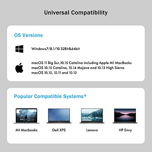 AMPIA COMPATIBILITÀ - La Docking Station USB è compatibile con il sistema operativo Mac e Windows, il laptop con slot USB 3.0 o USB di tipo c. Lo slot USB Type-C non richiede il supporto per la modalità USB Type-C Alt. Installando il driver alla prima volta, il cliente avrà una potente docking station con uscita video, trasferimento dati, Gigabit ethernet. Si prega di prestare attenzione, è necessaria l'installazione del driver.