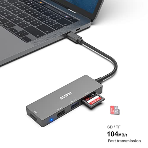 Hub USB C, BENFEI 5 in 1 Tipo C Hub HDMI 4K con 2 porte USB, lettore di schede SD/Micro SD, per MacBook Pro 2019/2018/2017, iPad Pro 2019/2018, Pixelbook, XPS e altro