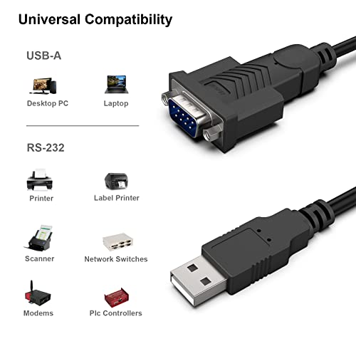 AMPIA COMPATIBILITÀ: l'adattatore da USB a RS232 è dotato di chipset Prolific PL-2303 per la massima compatibilità possibile con Windows 11, 10, 8, 7, XP, Vista, 2000, 98, MacOS8 o versioni successive, Linux 2.4.0 e versioni successive e altre piattaforme ;