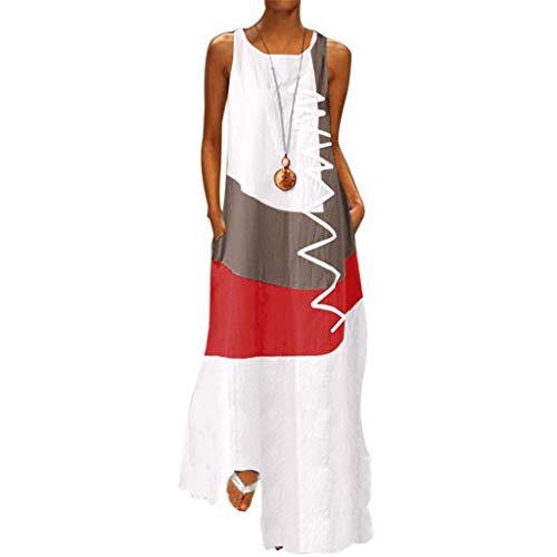 BENGKUI Donna Taglie Forti Senza Maniche O-Collo Maxi Abito Lungo Serbatoio Canotta Color Block Patchwork Stampa a Righe Ondulate Prendisole Casual Allentato Vintage con Tasche S-5XL