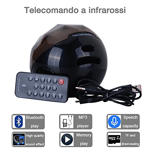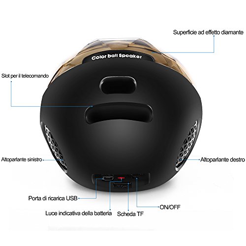 BENGOO Cassa altoparlante wireless con stupende luci LED cassa bluetooth o AUX supporta schede micro-SD controllo remoto telecomandato per Iphone/ Tablet/ PC/ Computer portatili