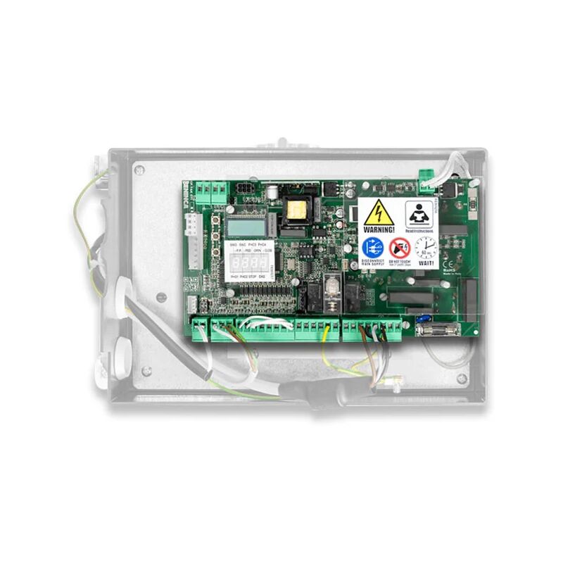 Beninca - ricambio centrale interna serie yak25 oti 230vac - alimentazione motori 230 vac / 1000 w trifase - display lcd integrato - inverter integrato - encoder virtuale - ricevitore radio 433.92mhz modello one2.wb fornito in dotazione di serie - logica di funzionamento automatica, semiautomatica e uomo presente - ingresso per bordo sensibile n.c. o 8k2 - ingressi passo-passo, apre, chiude, pedonale, stop - n° 2 ingressi configurabili per fotocellula attiva sia in apertura che chiusura o attiva solo in chiusura - uscita configurabile come spia segnalazione cancello aperto, luce di cortesia o luce di zona - uscita per test fotocellule - regolazione elettronica della coppia con calcolo automatico per ogni punto della corsa (stc system) beninca - cp.yak oti