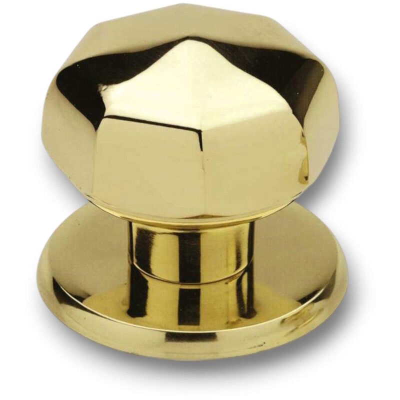 POMOLO POMO PER PORTA PORTONCINI OTTAGONALE OTTONE LUCIDO VERNICIATO MM.70 in ottone. Ottagonale. Base ø 80 mm Impugnatura ø 70 mm Finitura oro lucido verniciato