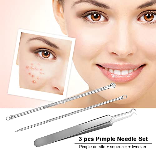 Benkeg Aghi Pimple Facial - Set di 3 Aghi Brufolo Set di Rimozione di Comedone Acne Clip Pinzette Comedone Extractor Squeezer Beauty Care