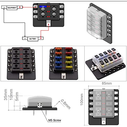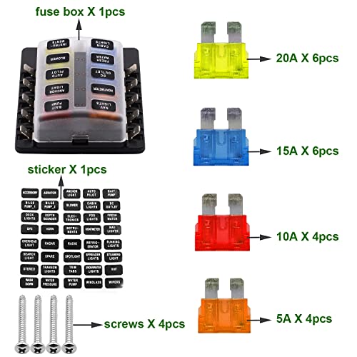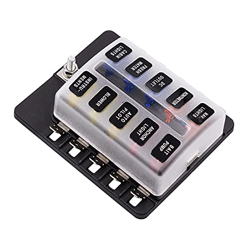 Benkeg Scatola portafusibili a 10 vie, scatola portafusibili con indicatore di avvertimento LED Coperchio impermeabile per barca per camper DC 12-32