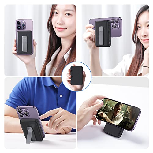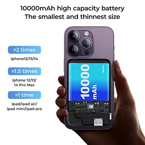 BENKS Batteria Magnetica Con Supporto In Alluminio, Batteria Esterna 10000mAh Wireless Power Bank Compatibile con Magesafe per iPhone 14/13/12 Serie/Airpods (Black)