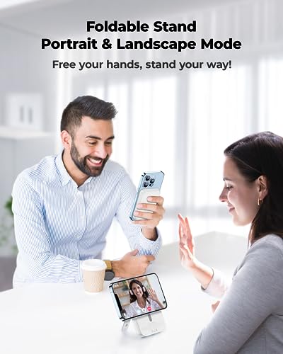 【Supporto pieghevole flessibile】Goditi la comodità di utilizzare le mani libere con il supporto regolabile della nostra batteria MagSafe. Posiziona il tuo telefono per una visualizzazione semplice, che tu sia in aereo, in riunione o semplicemente a casa a rilassarti. Addio a supporti aggiuntivi per il telefono e libera le tue mani per il massimo comfort. Quando sei in movimento, piegalo e portalo con te come caricatore wireless portatile.