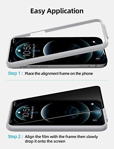 【Facile da installare】: con l'ausilio di posizionamento, questo proteggi schermo per iPhone 12 Pro Max è molto facile da attaccare. Applicazione di colla di protezione ambientale, adsorbimento automatico.
