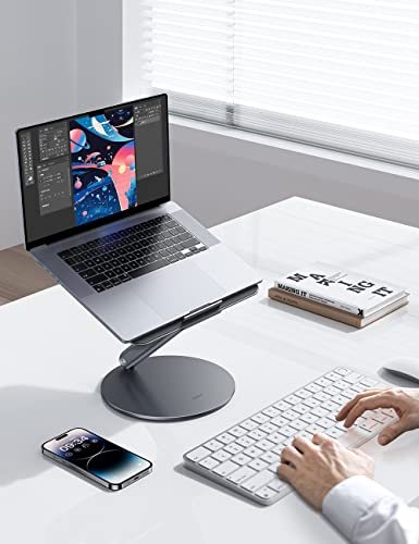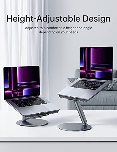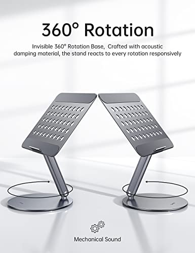 BENKS Supporto per Laptop Regolabile con Base Girevole a 360°, Alluminio Pieghevole e Portatile per Scrivania, Compatibile con MacBook/Altri Laptop/iPad Fino a 16"