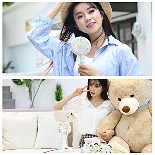 BENKS Mini Ventilatore Portatile da Esterno e da Scrivania con Supporto e con 3500mAh Batteria, 3 velocità USB Ventilatore da Tavolo Silenzioso per Ufficio/Esterno/Campeggio/Camera da Letto, Bianco