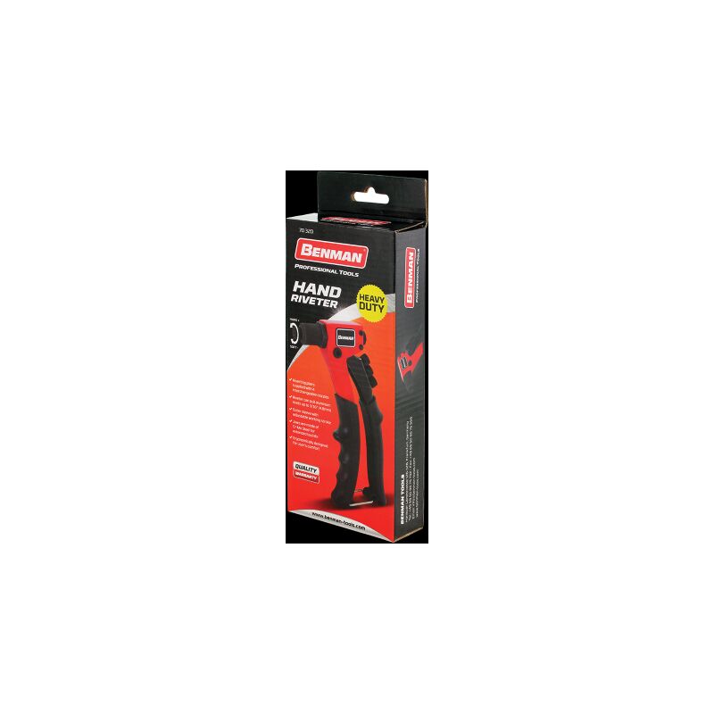 Pinze rivettatrici dotate di 4 ugelli intercambiabili In grado di lavorare con rivetti in alluminio fino a 3/16 (4,8 mm) Maniglia esterna con corsa di lavoro regolabile Le ganasce sono in acciaio Cr-V per una lunga durata dell'utensile Ergonomicamente progettato per il comfort dell'utente Adatto per rivetti INOX Ugello facile da sostituire