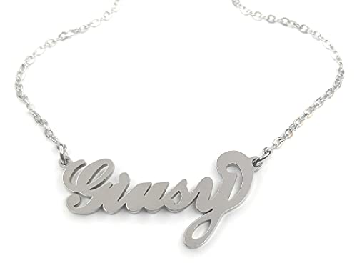BENNY2000 Collana Donna con Nome in Acciaio, in CORSIVO Elegante, Girocollo Regolabile Anallergico Color Argento- Arriva con Confezione Regalo (GIUSY)