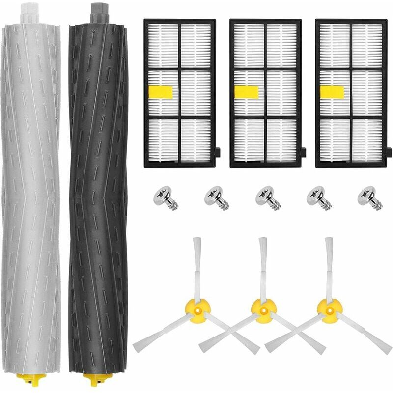 Accessori Roomba compatibili al 100% - - Parti del pavimento perfettamente compatibili con Roomba 800 805 810 825 830 840 851 860 865 866 870 871 876 877 880 885 886 890 891 896 900 920 925 930 934 Robot aspirapolvere /p> [DESIGN INGEGNERIZZATO] -- Un kit di accessori personalizzabili per la tua gamma Roomba progettato per soddisfare pienamente la manutenzione del tuo elettrodomestico. I pezzi di ricambio Roomba 800 sono realizzati con materiali ad alta resistenza e rispettosi dell'ambiente, che possono essere sostituiti in tempo per prolungare la durata delle apparecchiature. [Maggiore efficienza di pulizia] - -- La serie Roomba 800/900 Il filtro HEPA aumenta notevolmente la cattura di polvere, polline, peli e allergeni con un design innovativo del filtro. Le spazzole laterali per i lati lunghi rimuovono sporco, polvere e detriti. [COSA PUOI OTTENERE]: 3 spazzole laterali, 3 filtri HEPA, 2 kit di aspirazione AeroForce, 5 viti di fermo per il montaggio della spazzola laterale, gratis