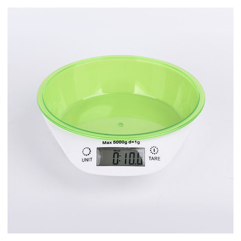 Pratica ciotola estraibile (volume 1000 ml) Ampio display LCD (45 x 20 mm) con retroilluminazione a contrasto Altezza delle cifre visualizzate 10 mm Campo di pesata fino a 5 kg (sensibilità 1 g) Funzione tara per peso contenitore